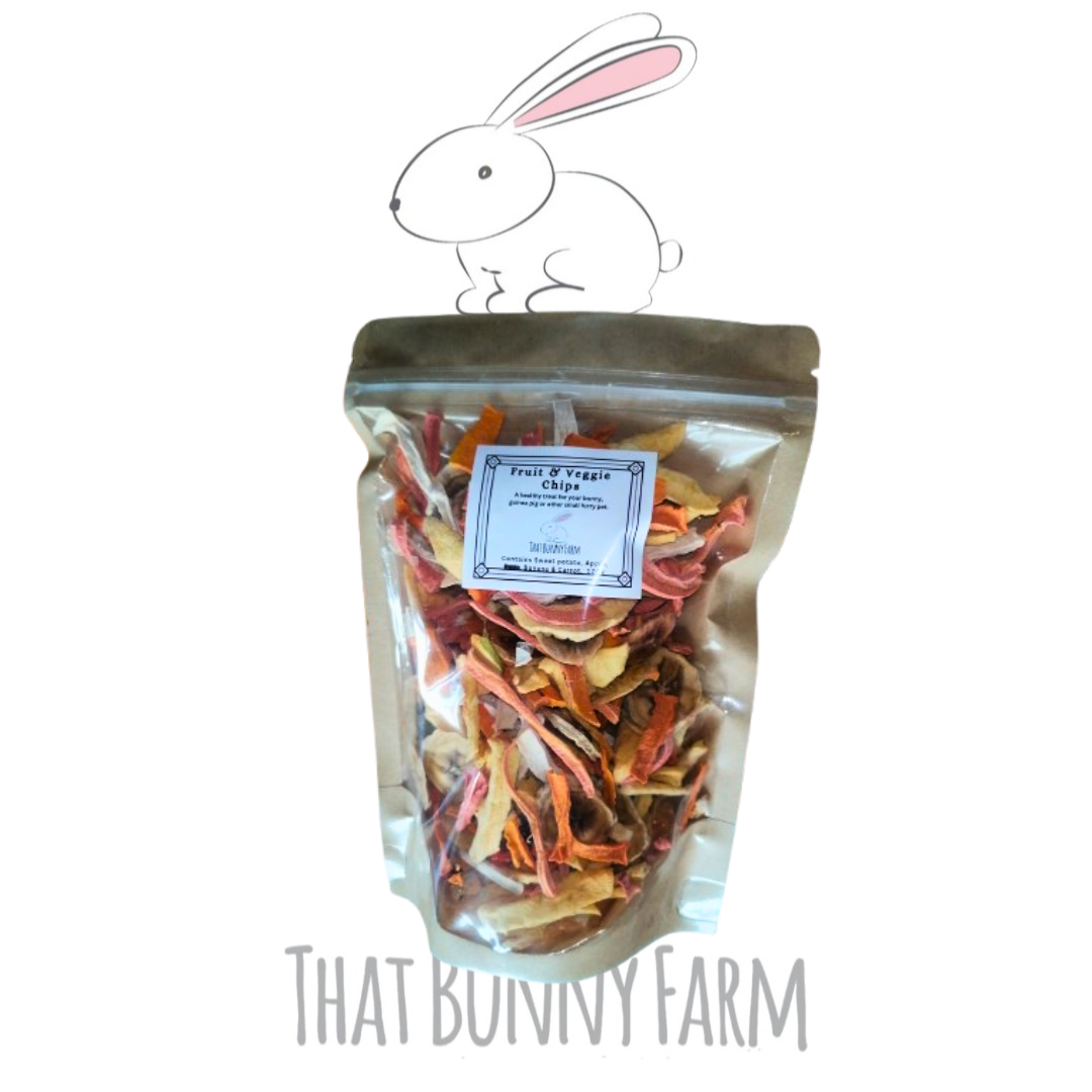 Give your bunny, guinea pig, or other little furry friend a crunchy, guilt-free treat with our Dehydrated Fruit and Veggie Chips!