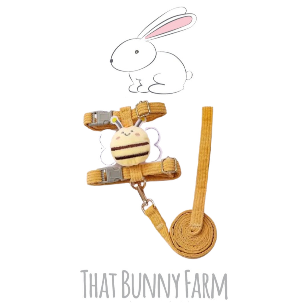 Golden Bumblebee Harness: Perfect for our smaller, energetic bunnies. This vibrant harness is designed to fit snugly on small to medium-sized rabbits, allowing them to hop and play with ease.